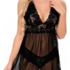 Confeccionada con una mezcla de tul, leotardo y puntilla, el Baby Doll ofrece una suavidad excepcional al tacto, garantizando comodidad y libertad de movimiento. Su diseño seductor y cut-out en la parte inferior destaca las curvas femeninas, asegurando una silueta cautivadora que atraerá todas las miradas. Además, incluye una bombacha a juego, completando un conjunto armonioso y atractivo.