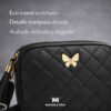 Con asas en color negro, la cartera puede adaptarse a diferentes estilos y ocasiones, desde un look casual hasta uno más sofisticado. A pesar de su tamaño compacto, cuenta con un cierre que asegura que todos tus artículos personales estén bien resguardados. Su forro interior añade un toque de calidad, haciéndola aún más atractiva para aquellas que valoran los detalles.