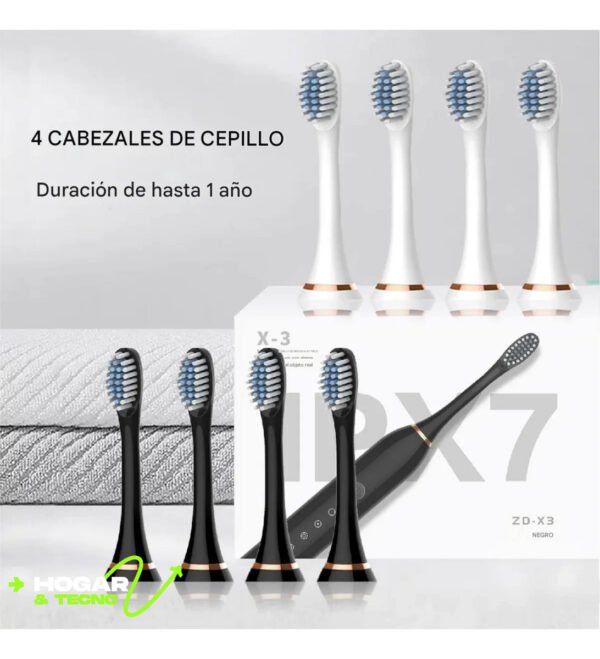 KIT CEPILLO DE DIENTES ELECTRONICO RECARGABLE BLANQUEADOR CON MANGO EGRONOMICO + REPUESTOS CEPILLO DE DIENTES