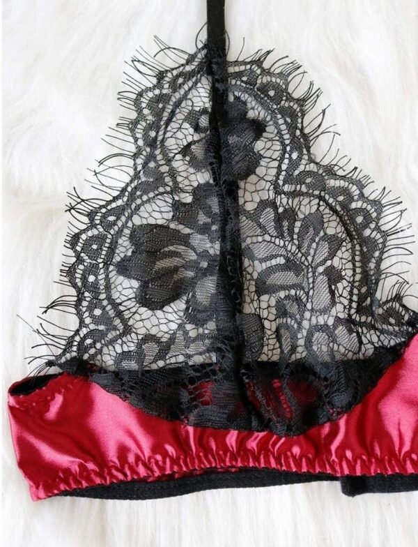 Conjunto Bralette Tul Puntilla Saten Y Tanga Suave Z402