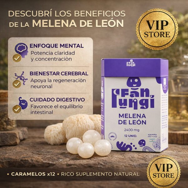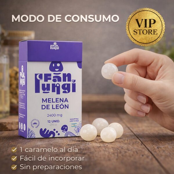 No recomendado para mujeres embarazadas o en lactancia sin control profesional. Si estás bajo medicación o con condiciones de salud, consultá con un profesional antes de usar. Caramelos de Hericium erinaceus (Melena de León) – Pack x12 cápsulas / caramelos