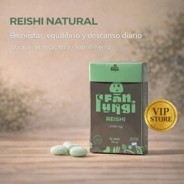 Si estás usando medicamentos, o tenés alguna condición de salud, consultá antes con un profesional. Pack Cápsulas/Caramelos de Reishi Natural – 12 unidades – Fan Fungi