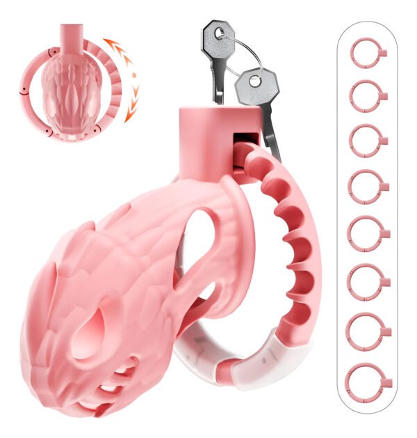 ¡Control total y placer asegurado! 🔒 Jaula de castidad rosa Modaltra: resina premium, ligera y ajustable. Diseño audaz para experiencias Ãntimas intensas. Candado incluido. ¡Eleva tu conexión!