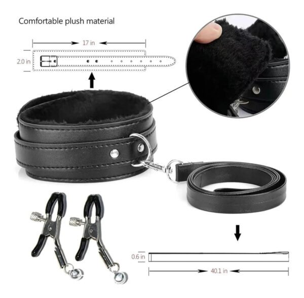 Fabricado bajo los estándares de Modaltra, cada componente está diseñado para proporcionar tanto comodidad como funcionalidad. Las esposas permiten una sujeción segura, mientras que el látigo añade un toque de emoción y aventura a tus juegos. La mordaza y las pinzas están destinadas a intensificar la sensibilidad y la complicidad, creando momentos de entrega total.