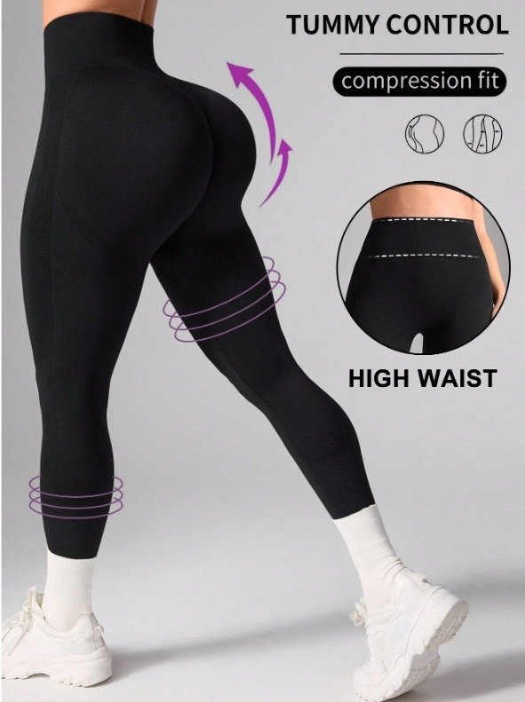 ¡Calzas Yoga Push Up! 🍑 Tiro alto, ajuste perfecto y poliéster transpirable. Ideales para deporte, yoga o futuras mamás. ¡Comodidad y estilo en cada movimiento! ✨ Sin bolsillos, diseño unicolor. ¡Tu mejor aliado!