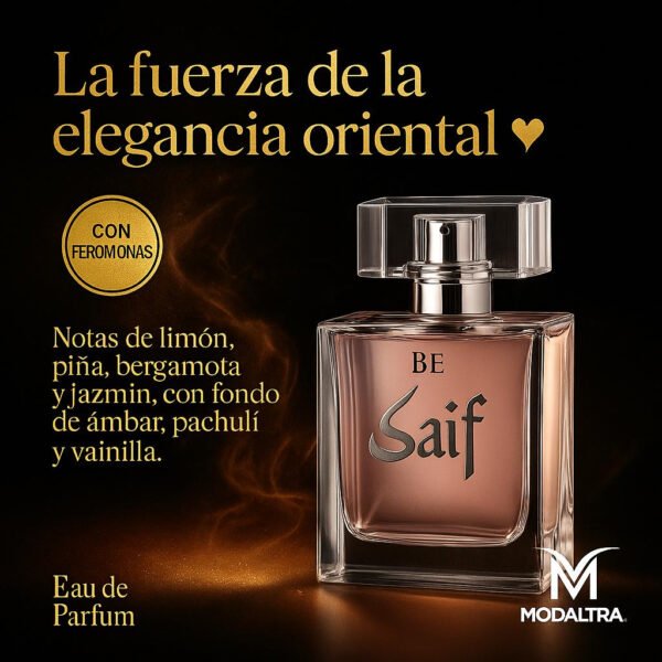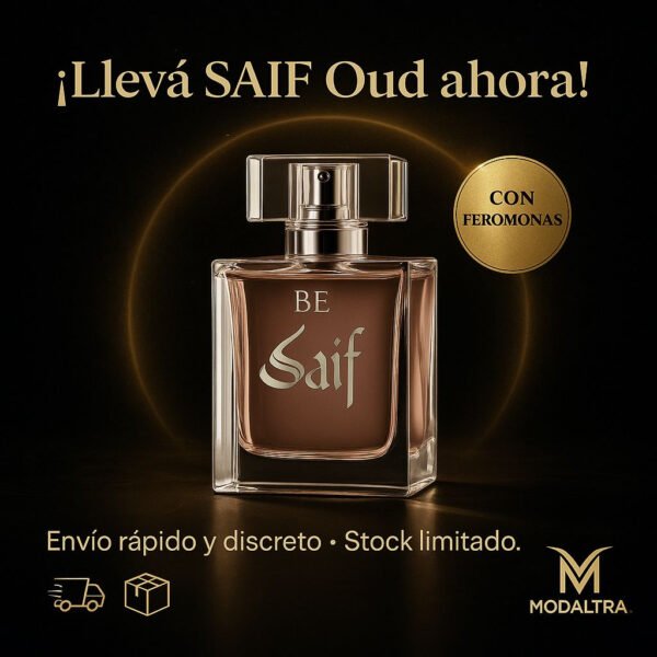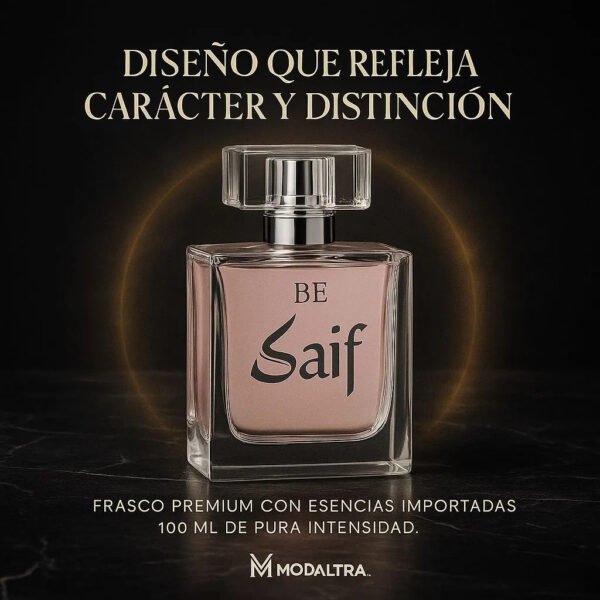 El envase de 100 mL está diseñado para ser práctico y funcional, ofreciendo un aroma persistente que se adapta a la personalidad de cada usuario. Llévate la esencia de Saif y deja una huella inolvidable dondequiera que vayas.